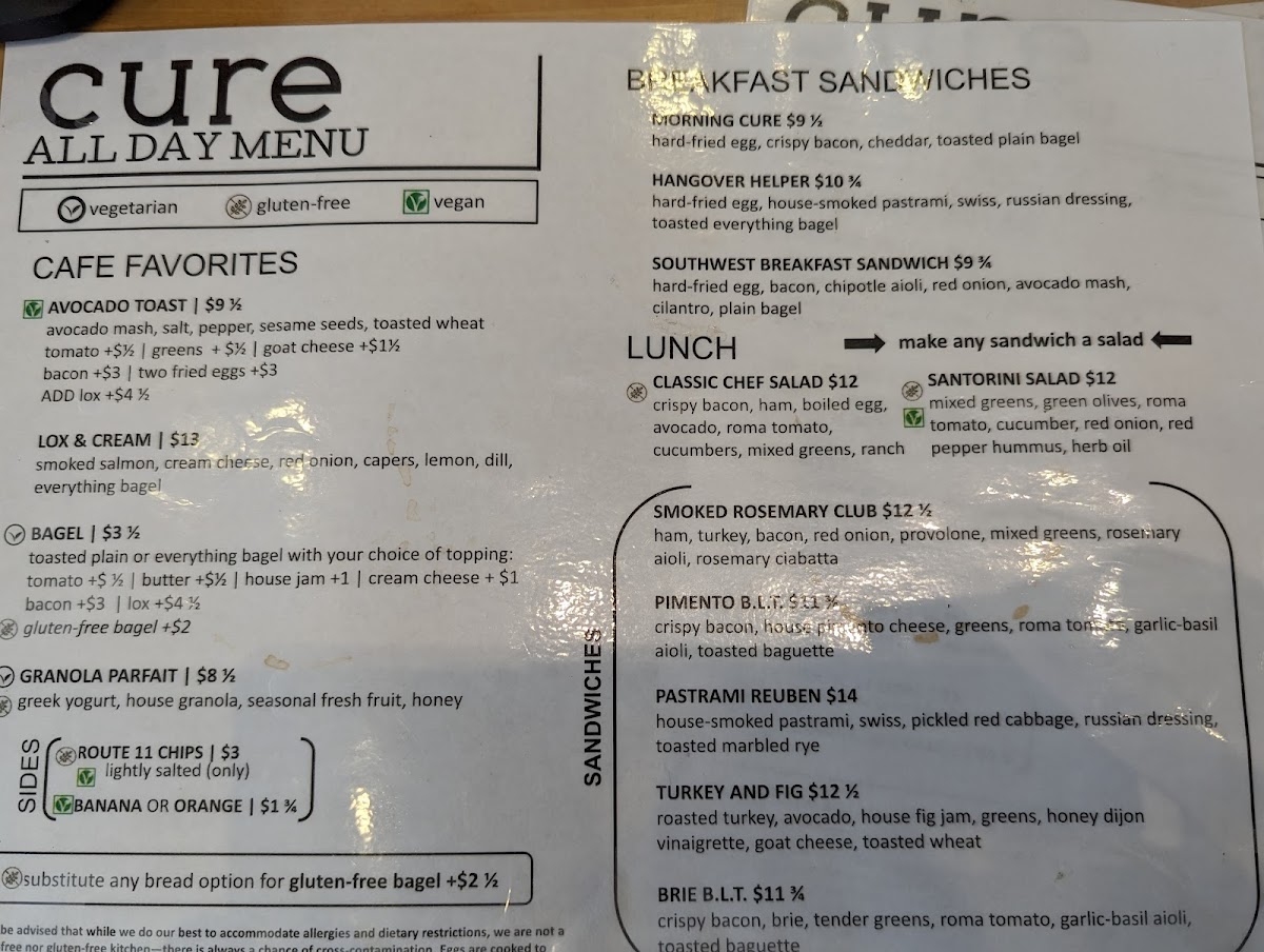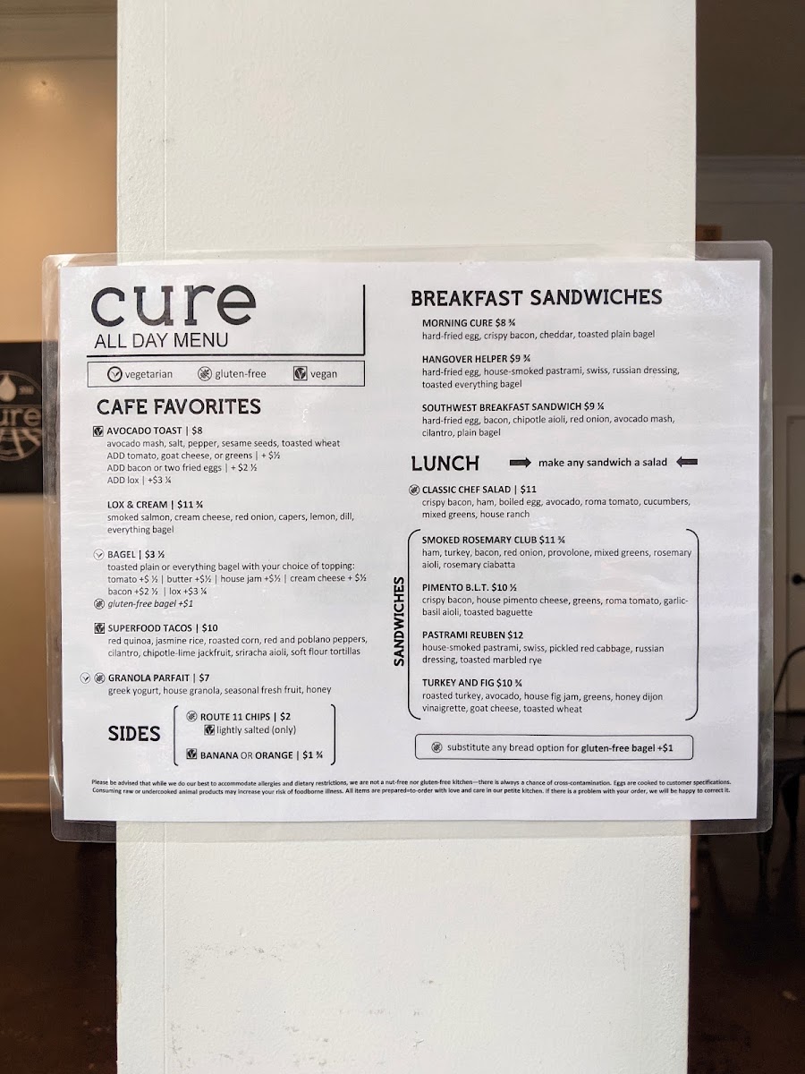 Cure Coffeehouse Menu (2025 Update)